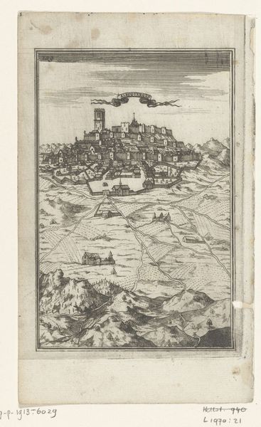 Curator: Looking at this engraving, I'm immediately struck by the artist's almost obsessive attention to detail. The precision of line, the meticulous depiction of architectural elements. Editor: Detail, yes, but also... detachment? It's like viewing a perfectly rendered dream of a place, not necessarily the place itself. The crispness and symmetry remind me of stage set blueprints, oddly… clinical, but beautiful. Curator: It's an aesthetic that very much reflects its time. This print, entitled "De Tempel Salomon / Die in Jerusalem ston," made sometime between 1725 and 1780, comes to us from the hand of Johannes (II) Kannewet. It's an engraving, offering a carefully structured vision. Look how the artist divides the space, separating the temple precinct from the broader cityscape, almost like two distinct planes of existence. Editor: The two zones do give it this ‘before-and-after’ feel, almost two separate concepts of Jerusalem competing. It feels deliberate. Maybe something to say about earthly versus heavenly Jerusalem? Curator: One could read it that way, particularly given the highly formalized treatment of space and the use of linear perspective, almost exaggeratedly so, which flattens depth and elevates the image to a symbolic representation rather than a naturalistic one. Editor: Absolutely. And the choice to render it all in such stark, almost industrial line work... It gives an impression of formidable structure but cold faith somehow, everything seems regimented. Where is the human emotion, where is feeling within this devotion? Curator: A valid critique. Kannewet’s emphasis does seem geared more toward illustrating an idealized concept, or architectural form rather than conveying lived experience. What it may lack in emotional warmth, it certainly compensates for in rigorous formal composition and masterful engraving. Editor: True, and the artistry definitely commands respect. I think this image has given me so much to consider not just what the temple was supposed to be, but about the role architecture has in defining faiths, beliefs and values over the centuries. Curator: A perfect encapsulation, I think. It also gives an incredible lens through which we can explore period techniques and methods.