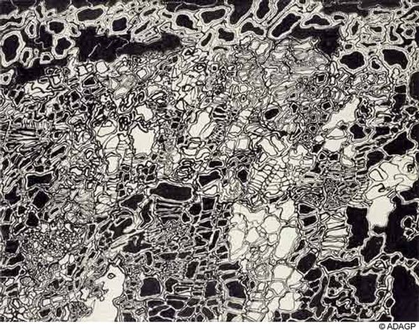 Editor: So, we're looking at "Sand" by Colin Self. It's a black and white image, like an abstract landscape. It kind of reminds me of a microscopic view of something organic. What's your interpretation of this piece? Curator: Given Self's interest in architecture and systems, consider this "sand" not as a natural landscape, but perhaps a deconstructed cityscape, presented during a period of great social upheaval. Editor: A cityscape? I wouldn't have thought of that. So, the abstraction is a reflection of societal fragmentation? Curator: Exactly. The starkness might be seen as a commentary on the perceived failures of urban planning and the anxieties of the time. What do you think the visual language suggests about the role of institutions during its creation? Editor: I guess it makes me consider how art reflects social anxieties. Thanks! Curator: Indeed. It’s a powerful lens through which to view history.
