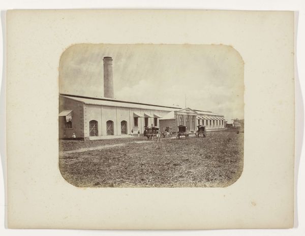 Editor: This is "Station van Surabaya," taken sometime between 1876 and 1884 by Herman Salzwedel. It’s a gelatin-silver print, which gives it that lovely sepia tone. The scene is quite tranquil, almost frozen in time. It makes me wonder: What's it like to view a moment captured so long ago? Curator: Indeed, isn't it fascinating how a photograph can become a portal? What strikes me about this image is how Salzwedel captures not just a station, but a slice of colonial life. Imagine the stories those travelers could tell! Do you see how the composition is almost theatrical? The station is the stage, the people are players. It is a study of serenity amidst the hum of bustling life. Editor: I do see what you mean about it feeling staged, there is a curious stillness! Almost dreamlike... I guess, the photographer must have chosen that particular time of the day intentionally? I would be interested to know more about this place... Surabaya? Curator: Precisely! And Surabaya, then part of the Dutch East Indies, was a vital port. This station wasn't merely a transit point, it was a symbol of progress, of connection. The colonial enterprise! Those perfectly aligned potted plants and benches... Even the soft light seems carefully orchestrated, doesn’t it? It tells of more than merely travel, there's a certain order and prosperity displayed, or rather *performed*, I imagine. Editor: Absolutely! It’s amazing how much information can be gleaned from a single photograph, even a quiet, still photograph like this. Thank you, I had not realised. Curator: My pleasure. Next time you look at an old photograph, don’t just see an image, imagine stepping into it, hearing the sounds, smelling the air! History comes alive.