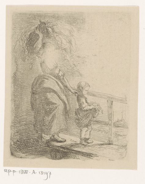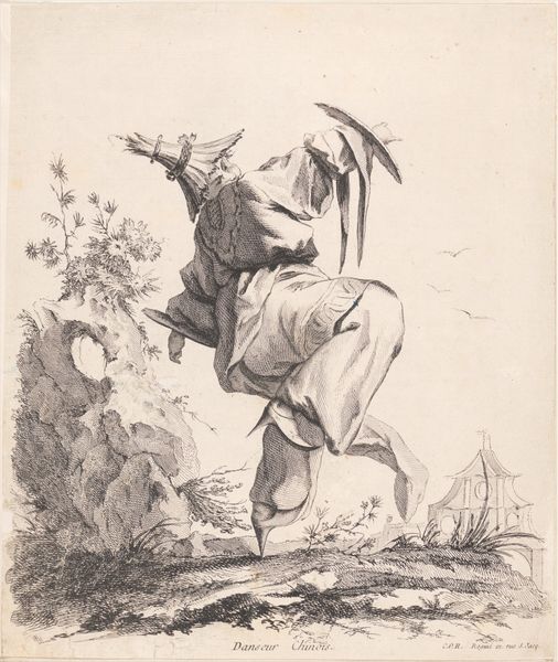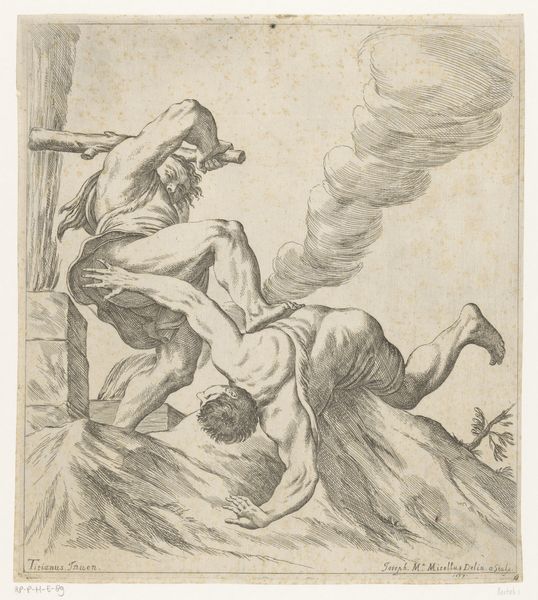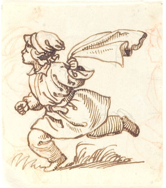 Nicolai Abildgaard made this drawing of the Portuguese poet Camoens, using pen and brown ink on paper. Notice how the ink's fluidity allows for quick, expressive lines, capturing the figure’s precarious stance and the billowing fabric. The washes of ink create depth and shadow, giving a sense of drama to the scene. The translucency of the ink on paper allows the light to interact with the image, almost as if we are witnessing a fleeting moment. Abildgaard's choice of materials speaks to a tradition of sketching and drawing as a means of exploring ideas and capturing the world around him. The immediacy of the ink and the simplicity of the paper contrast with the grandeur often associated with academic painting. It's fascinating how these simple materials and techniques can convey so much emotion and narrative, blurring the lines between a preliminary sketch and a finished artwork.
