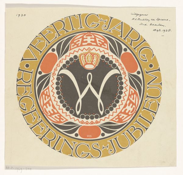Carel Adolph Lion Cachet created this design for a commemorative plaque for Queen Wilhelmina’s inauguration in 1898. The Netherlands was undergoing significant social and political changes. Wilhelmina's ascension to the throne at a young age marked a transition in Dutch national identity. Cachet's design, with its stylized monogram and use of the Dutch national colors, embodies the sense of national pride and unity that accompanied the new Queen. However, it’s worth noting that the monarchy has historically been a complex institution, often associated with privilege and power structures. Designs like this one played a role in shaping public perception and reinforcing the image of the monarchy, particularly important as Wilhelmina was female in a traditionally male dominated role. It invites us to consider how symbols and images contribute to the construction of national identity and power.