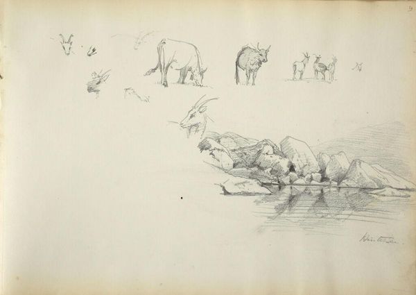 Editor: So, this is John Singer Sargent's "Sketches of Mountain Goats" from around the late 19th, early 20th century, a graphite study at the Harvard Art Museums. There's a liveliness to it. What strikes you when you look at this page of sketches? Curator: I see a rejection of rigid academic constraints. Sargent, known for portraiture of the elite, here engages with the raw energy of the natural world, sidestepping social expectations. How might we interpret his focus on these creatures as a commentary on freedom, on untamed spaces, perhaps even a subtle critique of the constraints of his commissioned work? Editor: That's interesting! I hadn't considered that it could be a commentary on freedom. Curator: Consider also the rapid, gestural lines. Is he capturing just the animal form, or also the spirit of the animal, resistant to domestication? Perhaps Sargent is subtly aligning himself with that resistance. Editor: I've never thought about art that way before. Thanks! Curator: It is important to look at it in a more diverse way. This enriches the narrative.