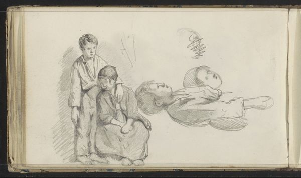 Editor: Here we have Esaias Boursse's 1662 pencil and coloured pencil drawing, "Woman Combing a Young Girl's Hair". The lines are so delicate. There's such a calm, domestic feeling. What strikes you most about this scene? Curator: Oh, the intimacy. It’s so incredibly tender. Boursse captures not just a moment, but a ritual, almost a dance. Do you notice how the light falls, softly defining the contours of their faces, their gestures? It whispers stories of quiet mornings, of the shared language between mother and daughter…or perhaps another female relative. It’s interesting, isn't it, how such simple lines can evoke such complex emotions? Editor: It is! I almost feel like I'm intruding on a private moment. It also makes me think about what isn't shown: the room around them, their lives beyond this moment. Curator: Exactly! And that's the beauty of it, isn't it? Boursse isn't giving us all the answers; he's inviting us to participate, to fill in the blanks with our own experiences, our own understanding of familial bonds. Do you see that the space almost appears as outdoors because the plane beyond seems like a shoreline? Editor: Yes, it does! That seems like an intentional choice to evoke more space in such a simple moment. I had not noticed that before. It adds an interesting layer to this very private image. Curator: It really does, I am glad you noticed that. Now I want to find other pencil drawings that explore family to see the other nuances that exist in each of them! Editor: Me too!