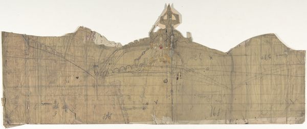 Curator: This evocative stage set design is by Eugène Cicéri, dating from around 1830 to 1890, currently held at The Metropolitan Museum of Art. He employed watercolor, pencil and print on paper. Editor: There’s a certain serenity to this drawing, almost melancholic. The soft lines and muted colors create this really tranquil waterside village. It gives off a pastoral feeling even. Curator: Absolutely. Cicéri's stage designs frequently invoke a romantic ideal of rural life, tapping into broader 19th-century notions of longing for a simpler existence in the face of increasing industrialization. These landscapes serve not just as backdrops, but reflect desires linked to societal changes. Editor: Seeing how it’s pieced together really shifts my focus. You can see how the paper has been sectioned to assemble a complete scene; you begin to recognize it as the outcome of industrial reproduction to be put on display as theater. What do you make of that layering? Curator: Those material aspects also speak to the period. With Cicéri, we see an embrace of the picturesque interwoven with developing industrial methods. The piece captures a society grappling with new technologies while yearning for past ideals, which gives it complexity that isn’t only pictorial. Editor: It feels inherently provisional; all of the seams show, the materiality betrays any illusions, yet in that lies an artistic intention of display for labor, almost as a form of production instead of artistic creation, per se. I wonder about his intended audiences too. Curator: Certainly, it is vital to think of the audience within specific cultural contexts, how set designs, or theatre at the time would communicate ideals and impact societal perceptions of landscapes and culture. The work then serves as both artifact and message. Editor: Indeed, I am left appreciating how such unassuming material choices can radically redefine the aesthetic and even ideological function of stage design. It goes to show the capacity of design to shape and reframe cultural meaning. Curator: By delving into these intersections we come to understand Cicéri's design as much more than a scene: It is, in many ways, a mirror reflecting complex aspects of the 19th-century experience.