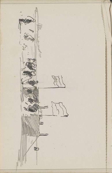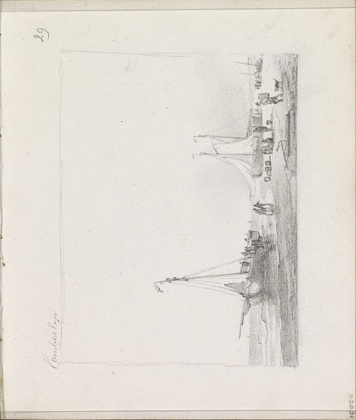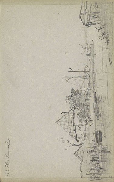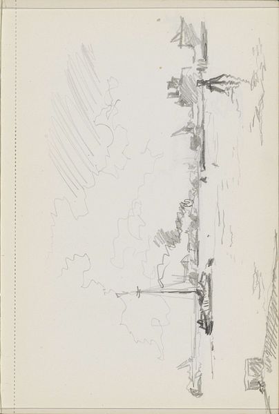 Cornelis Vreedenburgh made this drawing, "Boot aangemeerd aan een steiger", with pencil on paper. You know, when I look at this, I see the hand of someone really thinking through the process of looking. The pencil moves so quickly, almost nervously, as if trying to catch a fleeting moment, a feeling of being there. The lines are all so tentative, so searching, yet they build up to something solid. See how the darker smudges give weight to the shapes, while the lighter, scratchier lines suggest the play of light on the water. And that long horizontal line cutting across the page, is it the mast of a boat, or a horizon line? It’s left open, unresolved. It reminds me of a Cy Twombly drawing, the way it captures the energy of a place through these simple, almost childlike marks. It’s not about showing us exactly what's there, but about giving us a sense of the artist's own experience of seeing it.