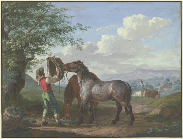Wilhelm Marstrand’s painting depicts a horse tied to a wooden post in a rural landscape, echoing themes prevalent in mid-19th century European art. Marstrand, who lived during a time of significant social change, including rising nationalism and industrialization, often explored themes of everyday life and historical narratives. Here, Rosinante, reminiscent of the steed from Cervantes’ “Don Quixote,” invites reflections on themes of identity and societal expectations. The horse is a symbol of labor, subservience, and also of freedom in the landscape. The portrayal invites us to consider the narratives of those whose labor underpins society, often unseen or unacknowledged. Rosinante’s somewhat melancholic stance can trigger an emotional connection, prompting reflection on how societal structures affect individual agency. Marstrand's Rosinante captures a moment of pause, embodying both the physical and emotional constraints of its existence, and serves as a poignant commentary on the universal struggle for self-determination within societal frameworks.