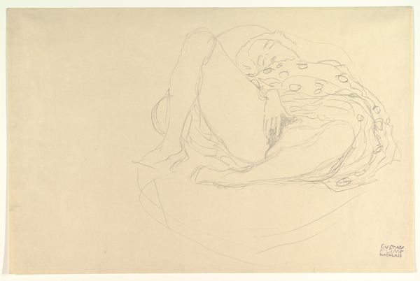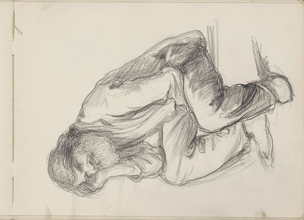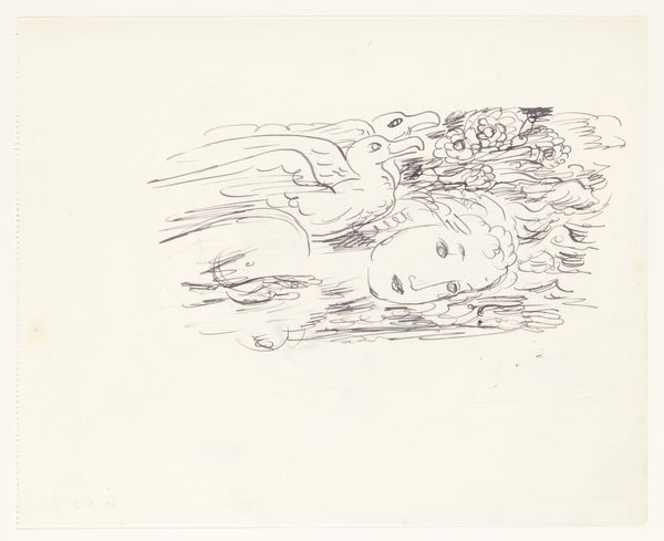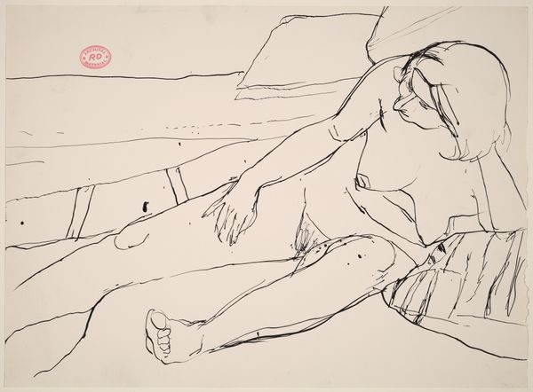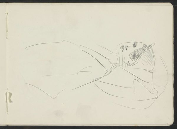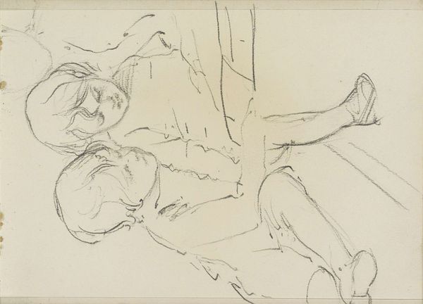 Curator: Welcome. We're looking at Peter Hansen's ink drawing, "Lille pige læser højt for en syg (kunstnerens hustru og datter)," created between 1914 and 1918. Editor: The immediate impression is one of poignant stillness. The sparseness of the ink, the delicacy of line, speaks of a somber intimacy. There is emptiness in the page around the figures as they appear isolated. Curator: Indeed. Hansen utilizes simple lines, carefully hatched to create tonal variations that define the figures and their immediate surroundings. Note the compositional balance: the darker area where the child is, drawing the eye to contrast with the simple horizontality of the sick mother. Editor: And think of the physical labor inherent in this ink drawing. Each line carefully rendered, showing his presence and the pressure of the pen against the paper, it embodies both the artist’s touch and the labor involved in comforting his wife and daughter. Curator: The visible, controlled use of ink also suggests a narrative— the tenderness, concern, the quietness of their shared space in the artist’s home. It resonates with an almost desperate need to capture and hold onto this moment. Editor: The stark reality of illness is undeniable here, which might seem contrary to "high" art but so powerfully shown in a seemingly casual medium of ink, something readily available and immediate to hand in moments of everyday life. It challenges ideas around artistic preciousness. What kind of paper did he choose? Was it handmade? That is equally interesting! Curator: Ultimately, Hansen constructs more than just an image; he crafts a meditation on empathy and familial love in the face of sickness, an image with significant visual presence created with few materials. Editor: Yes, considering how the materiality and artistic processes bring viewers into Hansen's personal narrative; the artwork leaves an enduring testament of family relationships during times of difficulty.