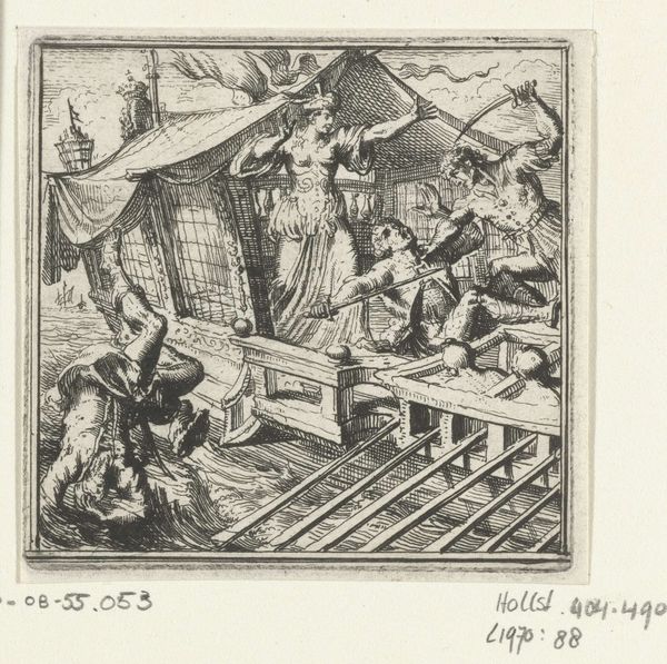 Curator: This etching, dating from around 1926, is titled "Picnic" and was created by Beulah Stevenson. It’s rendered in a monochrome palette, characteristic of prints from this era. Editor: My immediate impression is of intimacy despite the bustling scene. It feels very personal, almost like a candid snapshot lifted from a family album, despite the scratchy pen strokes, or maybe because of them. Curator: That intimacy is interesting considering the context. Etchings, even those depicting leisure, often circulated within broader social networks, conveying cultural values around leisure and class. Do you pick up on any particular symbols that resonate? Editor: Oh, definitely. The very act of a picnic speaks to a deliberate engagement with nature and a sense of community. There's the positioning of the figures in a circular arrangement. The bottle being poured, shared food and drink…it all echoes classic depictions of communal feasting and ritual. Curator: Good point. There's a strong genre painting element here too. These depictions of everyday life contributed to defining what was considered normal or desirable at the time. I see it as playing into the idea of the modern family unit. The framing with the trees feels very stage-like. Editor: I’d argue that there is a suggestion of a more profound meaning beneath its familiar depiction. Food often stands for more than mere sustenance; in this case it embodies connection, kinship, but also mortality, as something consumed, and, perhaps eventually forgotten. Curator: Perhaps. But the imagery in itself doesn't overtly signify those layers. Stevenson could just be recording a commonplace event with the values reflecting society at the time. I think that without written accounts it would be challenging to claim Stevenson set out to do this beyond face value. Editor: I disagree; that doesn't mean we shouldn't try to unlock any hidden meanings. Even common social activities can act as expressions or even celebrations of beliefs. By bringing them to our attention, Stevenson might suggest a more thoughtful or reflective dimension to an experience, transforming its cultural role from banal into powerful. Curator: That’s certainly something to consider as we think about how artistic imagery interacts with the audience through changing historical tides. It makes me think about how perceptions will change for contemporary observers viewing this pastoral setting almost one hundred years after the etching’s conception. Editor: Indeed, these symbolic interpretations, I hope, provide a link through the centuries, enriching not only the artwork itself but its context within the museum as well.