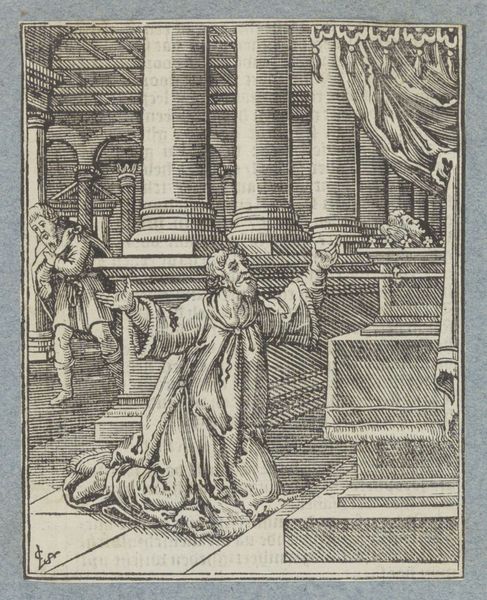 Christoffel van Sichem II created this woodcut titled "Mordekai in rouwkleren" sometime in the first half of the 17th century, likely in the Netherlands. The print depicts a scene from the Book of Esther, where Mordecai mourns the decree to annihilate the Jews. Sichem's choice of this subject matter reflects the religious and political climate of the Dutch Republic. As a Protestant nation that had fought for independence from Catholic Spain, the Dutch identified with the plight of the Jews in the Bible. The print's distribution was facilitated by the well-established printing industry of the time. To better understand the cultural significance of this print, we can consult historical sources, religious texts, and art historical literature. By examining the social and institutional context in which it was created, we gain a deeper appreciation for its enduring message. The meaning of art changes depending on context.