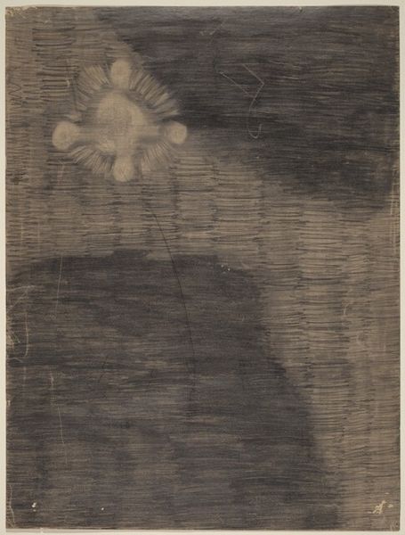 Editor: This is "Bloem," created sometime between 1874 and 1945 by Carel Adolph Lion Cachet. It's a mixed-media drawing on paper, using ink, and perhaps pencil too. The grey scale gives the image a muted feeling, almost ghostly. How would you interpret this work? Curator: That sense of the spectral is key, I think. What catches my eye is how the bloom is simultaneously emerging and dissolving. The heavy brushstrokes give it a forceful presence, yet the delicate lines around the edges suggest vulnerability and ephemerality. Do you see any specific symbolism arising from that tension? Editor: Perhaps it is pointing to the fleeting nature of beauty or even life. The flower, a universal symbol of growth, is presented in a way that highlights its impermanence. Curator: Exactly! Flowers have, across cultures and centuries, served as potent symbols – from fertility and love, to mourning and remembrance. In the Post-Impressionist movement, artists delved deeper into emotional and subjective responses, using symbols to explore the inner world. Cachet seems to be tapping into this, presenting the flower as a mirror reflecting our own anxieties about mortality. The use of grey scale, by stripping away the vibrancy, makes the symbol even more potent, drawing us toward contemplating our understanding of beauty and time. Editor: That's fascinating. I was so focused on the initial impression that I missed the cultural layers within it. It is true that this resonates with ideas within the artistic zeitgeist that explored subjective experiences beyond external, immediate sensations. Thank you, that's really given me a new way to consider not only this piece but others from this time period as well. Curator: The pleasure was all mine. By engaging with art history, we unearth how our predecessors grappled with similar anxieties, thereby strengthening a continuity through a visual dialogue of shared cultural experiences.