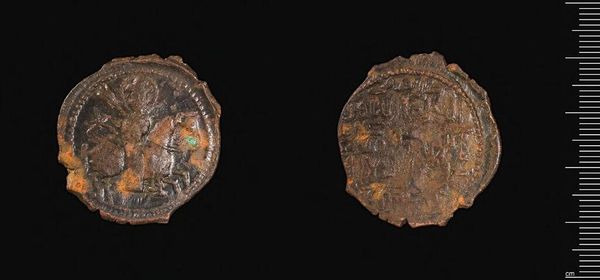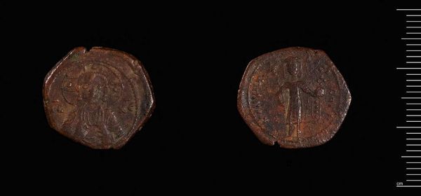 Editor: This is a "Coin of Manuel I" of unknown date from the Harvard Art Museums. It seems very small, and worn with age. What symbolic significance do you find in such an object? Curator: The images on this coin, though faded, speak volumes. Consider the figure depicted: is it Christ, or perhaps the Emperor himself, imbued with divine authority? Editor: I see the halo… so Christ, then? What does it mean to put that on currency? Curator: Exactly. This coin is not merely a unit of exchange, but a potent symbol of power – earthly and divine – stamped onto everyday life. It suggests a fusion of spiritual and temporal authority. Editor: So, every time someone used this coin, they were reminded of that power. Curator: Precisely. A constant, tangible affirmation of the established order. Looking closer, what other symbols do you notice, and what memories might they have triggered for those who handled it? Editor: It’s fascinating how much cultural weight such a tiny object can carry. Thanks! Curator: Indeed. The image becomes a mnemonic device, shaping perception and reinforcing cultural memory.
