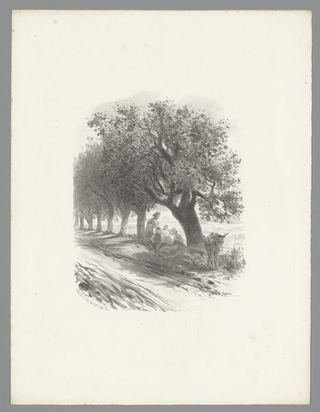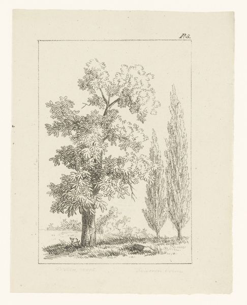 Editor: This is "Wilg," a pencil drawing created between 1820 and 1833 by J. Bernard. It’s a delicate landscape with a central willow tree. What I find striking is how such a simple subject evokes such a sense of quiet melancholy. What do you see in this piece? Curator: The apparent simplicity is deceptive. Beyond the romanticized view of nature, there's a crucial historical context. Consider the era – post-Enlightenment, the rise of industrialization. How might this seemingly tranquil scene serve as a commentary on the changing relationship between humanity and nature? Editor: That’s a great point. I hadn’t thought about it as a commentary, more of just an appreciation. Is the solitary tree a symbol of resistance against societal changes? Curator: Precisely. Romanticism often positioned nature as a refuge from the burgeoning societal upheaval. Think about the philosophical currents – the emphasis on individual experience, on emotion as a valid form of knowledge. This drawing invites us to consider our own place within this historical narrative, our role as active agents or passive observers of change. Editor: So, it's not just about the tree; it's about what the tree represents in that specific moment of history? Curator: Exactly! By recognizing these layers, we gain a deeper understanding of its artistic significance. It asks, how can we challenge the dominant forces that threaten to erase our connection with the natural world? Editor: I definitely see the drawing differently now, as an engagement with larger cultural anxieties of the time, not just a pretty picture. Curator: Art gives voice to such challenges and allows viewers across generations to keep questioning established ideas, and reflect on a variety of identities, including our relationship with the land.