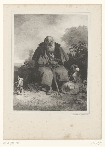 Nicolai Abildgaard painted "Ossian Singing His Swan Song" using traditional oil paints on canvas. The canvas, likely woven from linen or hemp, provides a textured surface, which influences the way light interacts with the paint layers, adding depth to the composition. Abildgaard’s meticulous brushwork and layering of pigments create a contrast between the smooth, luminous highlights and the darker, shadowed areas, enhancing the dramatic effect. The artist's skilled manipulation of the medium to depict varied textures such as the flowing beard, the rough texture of the rocks, and the soft folds of the robe, imbues the scene with a sense of realism and tactility. Although traditional fine art materials, the canvas and oil paint, remove this work from associations with labor or class, the work involved in the production process is immense. This painting asks us to consider the skilled traditions of painting as a kind of labor, and to challenge its traditional distinctions from craft.