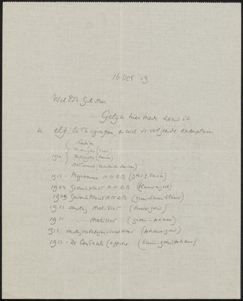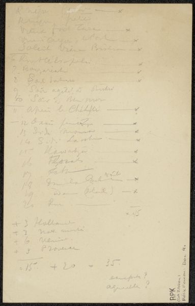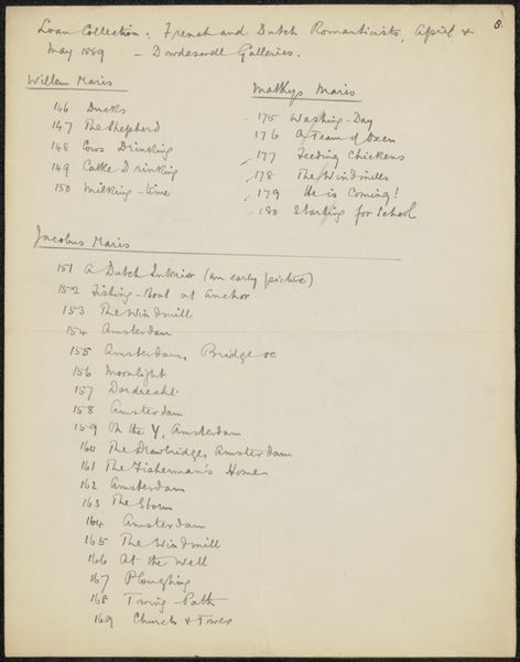 Andries Bonger created this list of letters from Odilon Redon between 1898 and 1916, with ink on paper. It’s not exactly a traditional artwork, but I’m interested in what it tells us about artistic labor. Consider the hand that produced these careful lines, the repetitive, almost meditative act of recording dates. These are the kind of tasks that underpin much artistic activity, the essential but often unseen work that goes into maintaining a creative life. Think, too, about the paper itself, a mass-produced material, and the ink, an industrial product. The very act of writing and record-keeping is labor, a job that takes time and energy. By focusing on this list, we shift our attention from the finished artwork to the daily grind, the unsung activities that make art possible. It blurs the lines between art, work, and life, prompting us to consider the value of all forms of creative production, whether traditionally considered art or not.
