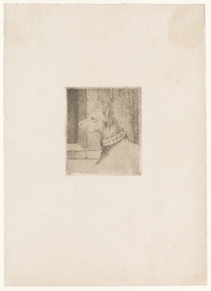 Curator: Good morning. Here we have "Jonge boerin," or "Young Peasant Woman," an etching made in 1889 by Oscar Schulz. Editor: The level of detail is incredible for an etching. I’m immediately struck by the tenderness of this portrait. There’s a real sense of dignity in her smile. Curator: Absolutely. What's fascinating here is how Schulz used a traditionally "high art" technique like etching to portray someone from a working-class background. It elevates the everyday. Consider the labor involved in creating such a detailed print, the materials, the acids eating away at the metal... Editor: Right, but who saw this? The late 19th century saw the rise of a new kind of public art through prints, often distributed in magazines and books. Realism as a movement served to engage new social strata within cultural dialogues. How might this image function in the context of the German art world? Curator: And her attire isn't overly romanticized. It seems genuinely reflective of the rural clothing of the time. Note also the carefully depicted objects: the teacup, the little plant in the background. Editor: It’s interesting how he's using realism but isn’t entirely documentary; the idealized, subtle details work together to create an authentic narrative. I wonder what message it sought to communicate to its original audience? Curator: Maybe a recognition of labor and its place in an industrialized world. Schulz gives the tools of the fine artist to depictions of daily, “common” lives. Editor: Or to create visibility, a different form of representation than in prior portraiture tradition, outside the traditional noble setting? To invite respect through image, and circulate those beliefs through imagery. Curator: A powerful consideration. I am moved by the image's enduring quality. Editor: Yes, and the enduring power of simple imagery in influencing public opinion.