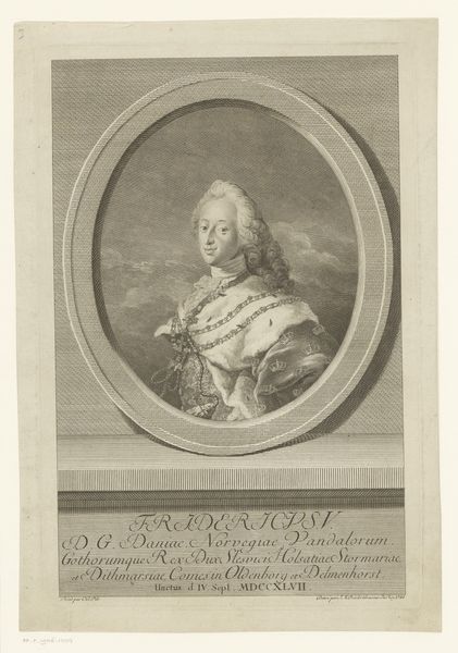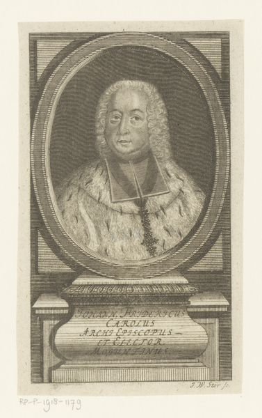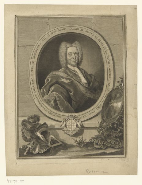 Nicolas de Larmessin III created this print of Philippus de Lamet using engraving techniques. The design is achieved by cutting lines into a metal plate, which is then inked and pressed onto paper, resulting in fine lines and detailed textures. The choice of engraving as a medium speaks to the period's emphasis on precision and detail, reflecting both the engraver's skill and the social status of the sitter. Engraving was often used for reproducing portraits, making them accessible to a broader audience, indicative of emerging social dynamics and an increase in image circulation. The lines of the engraving capture the textures of his garments and the contours of his face. The precise lines and tonal gradations suggest the artist's mastery over the medium, and the labor involved in producing such detail. Consider that each line was carefully etched by hand! Appreciating the print involves recognizing the value of skilled handwork in its creation. It also invites us to rethink the status of printmaking as a form of artistic expression in its own right, and not simply as a means of reproduction.