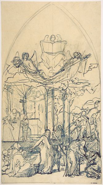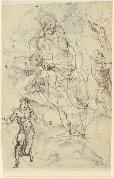 Editor: Here we have "Virgin and Child Appearing to Saint Paul," created sometime between 1612 and 1675 by Micco Spadaro. It's an ink drawing on paper, currently residing at the Met. I’m struck by the immediacy of the lines. It feels like a fleeting vision captured in a flurry. What catches your eye? Curator: Ah, Spadaro. He throws us right into the heart of the divine encounter, doesn’t he? That furious hatching gives everything a vibrant, almost frantic energy. Look at how Paul seems rooted to the spot, bewildered! Makes you wonder what celestial symphony is blasting in his ears at that very moment. Does it read as Baroque to you, or something else? Editor: Baroque, certainly, but a very raw version of it. Less pomp, more...panic? It makes me think about the psychological impact of religious visions, the sheer overwhelming power of them. Curator: Exactly! It is like the baroque but without the sugar coating. And think of Saint Paul— converted in a moment, just like that. Does this drawing make you wonder if he felt suddenly in touch with himself and the Divine, or suddenly disconnected? Is it beautiful or terrifying? Editor: Definitely both! The more I look at it, the more the chaos resolves into something profound. The Virgin and Child almost seem to be bursting into his reality, totally upending his understanding of the world. Curator: It is more than just "looking," eh? These aren't just lines of ink on paper. This is raw humanity bumping up against the vast unknown! I'm reminded of a quote by Flannery O'Connor: " You have to push as hard as the age that pushes against you". It applies here, dontcha think? Editor: It really does! The rawness reflects the intensity of belief in the face of a changing world. I'm not sure I'll ever see Baroque art the same way again. Curator: Good! Maybe art should hurt a little bit, force us to confront the contradictions and complexities. It should do the same for our view of ourselves!