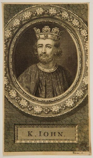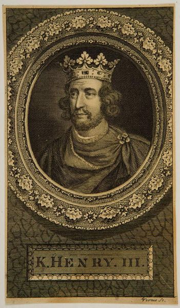 Editor: This is George Vertue's "King Richard I," an engraving. The detail in the armor seems so meticulous. What can you tell me about how this work reflects its time? Curator: The etching process, a relatively accessible means of image production at the time, democratized representation. Notice how Vertue renders the king's likeness. How does this image serve a purpose beyond mere portraiture, considering the context of its production and consumption? Editor: It does seem like it wants to present a very specific idea about Richard. Thanks, I’ll have to think about this more! Curator: Indeed. Considering the material conditions of its making offers new avenues for interpreting its message.