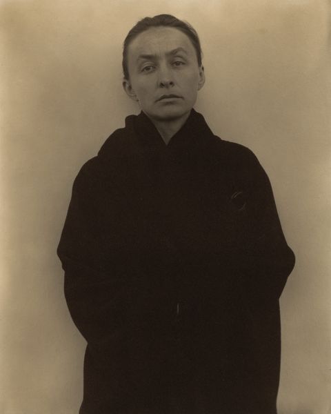 Alfred Stieglitz made this photograph of Georgia O’Keeffe, his muse and lover, using his camera as a tool for both documenting and shaping her image. It's like he’s using light and shadow as brushstrokes, creating a portrait that's as much about his perception of her as it is about her actual appearance. Look closely at the way the light falls across O'Keeffe's face. There’s a soft, almost sculptural quality to it, highlighting the planes of her face, the set of her jaw. The stark contrast between her dark coat and the crisp white collar draws your eye, framing her face like a flower in bloom. It's not just a photograph; it’s an intimate study of character. Stieglitz was part of a movement of photographers, like Edward Steichen, who were trying to position photography as a fine art, something capable of capturing not just reality but also emotion, atmosphere, and the essence of a person.