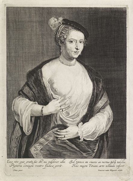 This is Theodor Matham’s engraving of H. Begga van Andenne, created sometime in the 17th century. The composition centres on the figure of Begga, her gaze direct, engaging us in a seemingly personal encounter. The use of line is particularly striking. Matham employs it to define form, create texture, and suggest depth. Look at the intricate detailing on Begga’s dress, where dense clusters of lines articulate the folds and shadows, contrasting with the smoother treatment of her face. Semiotically, the rosary beads and the crucifix allude to Begga’s religious status and the values she represents. The formal arrangement, with its stark contrasts and detailed rendering, creates a sense of immediacy, drawing us into Begga’s world. The use of black and white flattens the image. But it also creates a powerful visual impact. It leaves us contemplating the intersections of representation, identity, and cultural memory.