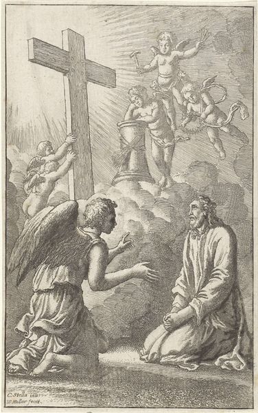 This print, made by Petrus Clouwet, shows Saint Thomas Aquinas drawing inspiration from the writings of other theologians. The medium here is crucial: printmaking. Prints like these were essentially a reproductive technology – like photography today. They took images, often originally paintings, and turned them into a format that could be circulated widely. This had a democratizing effect, spreading ideas far beyond the elite circles who could afford original art. Look closely and you’ll see the complex interplay of lines and hatching that define every figure and form. This reflects the labor-intensive process of engraving, where an image is painstakingly carved into a metal plate, inked, and then pressed onto paper. The level of detail and skill involved speaks volumes about the importance of craftsmanship in 17th-century art. So, next time you see a print, remember it’s not just a picture, it’s a testament to the power of accessible art and skilled handwork.