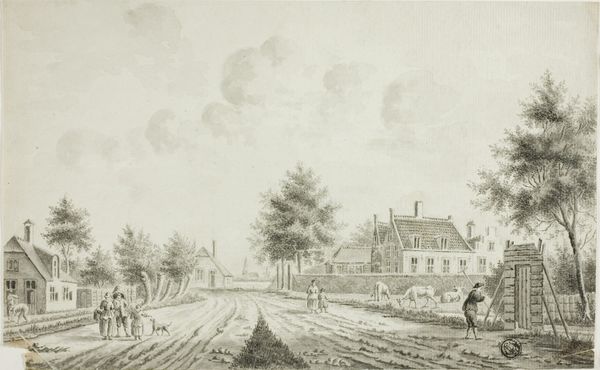 Jan de Beijer created this panoramic view of Vreeswijk and Vianen using pen and gray ink, a common choice for topographical drawings in the 18th century. The technique itself is quite linear, relying on delicate hatching to create tonal variation. Notice how the artist meticulously renders the textures of the buildings, the foliage, and even the reflections on the water. The fineness of the pen work suggests a slow, deliberate process, one that values precision and detail. But what I find interesting is how this technique contrasts with the scene itself. We see figures engaged in leisure – horseback riders, hunters – against the backdrop of a working landscape, dotted with windmills and other signs of industry. De Beijer's choice of medium and technique elevates this scene, but it also speaks to the relationship between labor and leisure, production and consumption, in the 18th-century Dutch Republic. It reminds us that even the most picturesque landscapes are shaped by the hands of those who work within them.