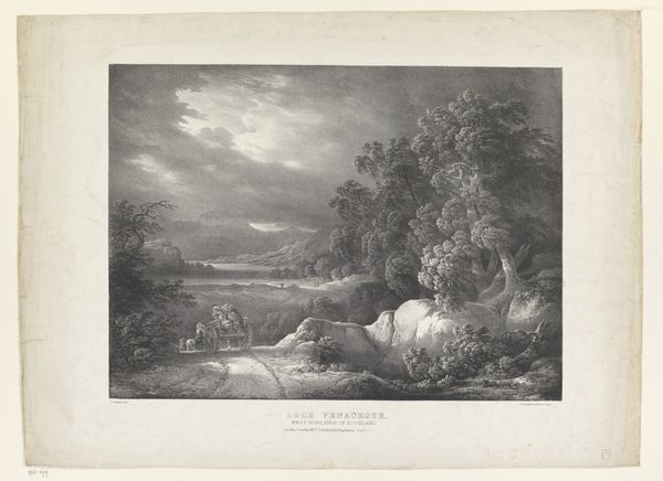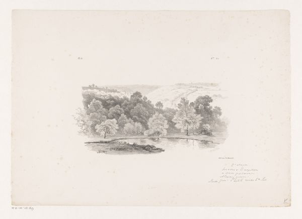 Editor: So, this is "Vrouw in Gelders landschap" by N.M. Schild, made sometime between 1837 and 1840. It’s a drawing or print. The landscape is peaceful, but there's a certain solitude, seeing the woman alone on the path. What do you see in this piece, especially regarding its context? Curator: What strikes me immediately is how this idyllic landscape belies the social realities of 19th-century rural life. While on the surface it speaks to Romanticism, idealising nature, we need to critically examine whose story is being told, and from what perspective. Who is this woman, alone in the landscape? What is her relationship to the land? Editor: I hadn't thought about that. She seems almost like a symbol *of* the landscape, not necessarily *in* it with agency. Curator: Precisely. Consider how class and gender intersect here. Landscapes like this often erase the labour and struggles of those who worked the land, particularly women. Are we seeing an accurate portrayal, or a romanticized version meant to appeal to a particular viewership – one likely far removed from the actual hardships of rural existence? What about the economic forces at play during this period, driving people off the land and into burgeoning urban centres? Editor: So, by presenting this idealized version, it might be obscuring the truth of the time. Are the realism elements more about capturing an aesthetic, rather than representing reality? Curator: Exactly. Realism here serves to naturalize an ideological perspective. It’s crucial to ask, whose reality is being represented and to what end? Can we look at art like this and also look at the societal factors impacting women and marginalized populations in the region during this time? Editor: This definitely gives me a lot to think about when looking at landscape art now. I hadn’t considered it beyond just the visual. Curator: That's the power of art, isn't it? To provoke questions and encourage us to critically examine the world around us and how we see history.