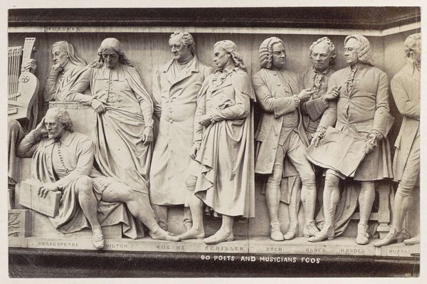 Curator: Let’s discuss these memorial sculptures. Here we have two reliefs honoring members of the Brathwaite and Warre families, located in Epsom. Both seem to be crafted from white marble. Editor: They are stark, aren’t they? The use of white marble against what I imagine are equally pale church walls… the scene almost feels like an apparition. There’s a tangible sense of grief emanating from the figures depicted. Curator: Indeed. Let’s start with the one on the left. Note the clean, Neoclassical lines and the pyramidal composition. The female figure, likely representing Grief, is positioned leaning on a column supporting what looks like a funerary urn. The folds of her drapery and the angle of her head all contribute to the overall sense of melancholy. The artist demonstrates careful attention to classical forms. Editor: And what of the visual symbolism? Her downward gaze and the limpness of her hand evoke feelings of loss and resignation. Also, the funerary urn would certainly have signified mortality to contemporary viewers. It reminds us of how strongly the Victorians leaned on this sort of classical iconography to process death. Curator: The adjacent memorial shares a similar visual language, although the composition is distinct. Another draped female figure appears here, this time slumped against a column, perhaps to convey a greater weight of sorrow than the first. Note the differences in surface texture; this memorial features smoother finishes overall, perhaps influencing how light interacts with the sculpted form. Editor: I can’t help but wonder about the familial relationships reflected in these pieces. The inscriptions are so detailed! They speak to legacies, to connections through generations. And the placement, side-by-side… they almost feel like conversation pieces for the deceased, reaching out across time. Curator: From my perspective, this is a clear engagement with classical tropes within a formal vocabulary inherited from sculptors such as Canova. We see an artist deeply invested in established modes of representing mourning through pose, gesture, and carefully calibrated spatial arrangements. Editor: It's fascinating how visual motifs like the draped figure of Grief recur across centuries and cultures, revealing how humans grapple with universal themes of loss and remembrance through art. These are more than sculpted marble—they're vessels carrying complex emotions across time.