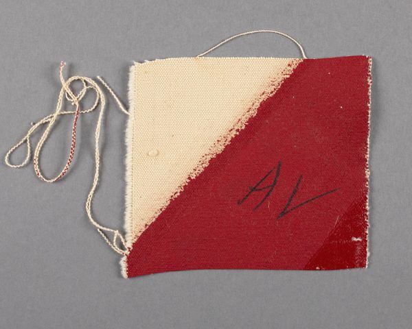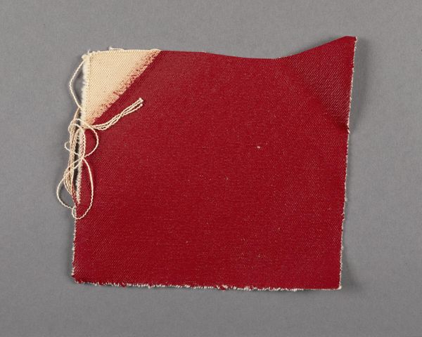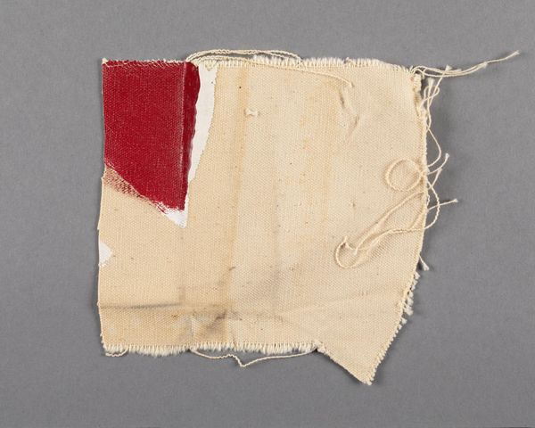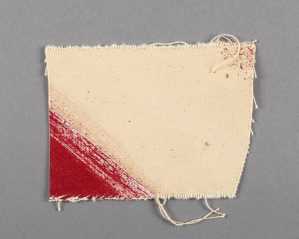 Editor: Here we have Barnett Newman's "Painted canvas fragment," of indeterminate date. The contrast between the raw canvas and the striking red is quite arresting. What can you tell me about its significance? Curator: Consider the raw edges, the unprimed canvas, the visible brushstrokes. Newman presents the physical reality of painting. It challenges the traditional hierarchy of art and craft, doesn't it? What does the fragment form suggest about the artistic process? Editor: It feels like a study, a test of color and texture. Curator: Precisely. It encourages us to focus on the materials themselves, the labor involved, and the means of production. It makes us question the art object's traditional role. Editor: I never thought about it that way, focusing on the 'how' rather than just the 'what'. Curator: Exactly!