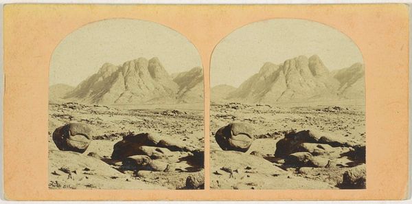Editor: This is Francis Frith's "Ruins of a Bishop's Palace in the Wadi Feiran Valley," taken between 1859 and 1861. It’s an albumen print; it looks very detailed but also quite stark. What’s your perspective on this work? Curator: Frith’s choice of albumen print, given its laborious preparation, emphasizes the sheer effort involved in creating images in remote locations at that time. This medium connects the image to a whole system of labor and colonial exploitation involved in obtaining the raw materials required. Editor: That's fascinating! I hadn't thought about the materials themselves carrying that weight. The “Orient” was very fashionable during the period, but often idealized in paintings. Is Frith doing something different? Curator: Exactly. Frith's "Orientalist" landscapes were immensely popular, mass-produced and sold as exotic views. But through focusing on ruins – on decay – Frith acknowledges time and human intervention. How are these photographic prints consumed? And, crucially, who has access to them, and who is excluded? Editor: It seems to complicate the standard Orientalist narrative then. So, is he, perhaps unintentionally, highlighting the costs, both environmental and human, of the entire project of bringing these images to a Western audience? Curator: Precisely. Frith’s images become documents of a complex transaction, revealing how taste and labor intersected within the circuits of colonial power. Consider also the labor required to create the scene: those standing must make sure the photography machine operates effectively; there’s a chain of economic actions needed before that image can be put on paper for audiences far from the place where the photography was shot. Editor: That really gives me a lot to think about regarding the relationship between art, labor, and audience in that period! Curator: Indeed. By thinking about it this way we may consider these artworks to offer invaluable visual perspectives on colonial trade networks of 19th-century visual culture.
