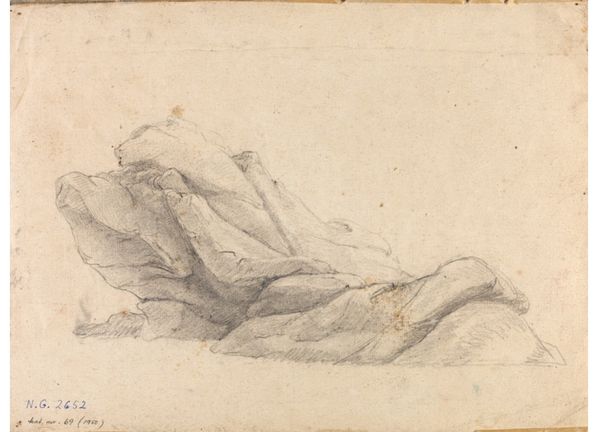 Editor: Here we have Paul Troger's ink and paper drawing, "A Desert Hermit Adoring the Crucifix." The composition and delicate ink work create a somewhat ethereal and lonely atmosphere. I’m curious, what are your insights into this piece, especially concerning the choice of materials and their impact? Curator: This drawing really highlights the interplay between the artist's intention, the materials he chooses, and the social context in which he creates. Notice the use of ink on paper, readily available and relatively inexpensive mediums. This suggests that the artwork was conceived perhaps not as a high-status commission but rather as something more personal or preparatory. It makes you wonder: where did Troger source his paper and ink? Was this paper locally produced, or imported? What was the significance of these particular materials at that historical moment? Editor: That's interesting, I hadn't considered the economic implications. It makes me think about accessibility in art. Do you think the medium affects how the subject matter is received? Curator: Absolutely. The drawing medium itself lends a certain immediacy and intimacy, which is key for devotional images like this one. Furthermore, the act of drawing--the labor itself—becomes visible through the delicate lines and shading. It pushes us to reconsider art production as a social endeavor and how that endeavor assigns or removes value. The drawing then asks viewers to appreciate and engage with the work differently than if it had been a large-scale painting or sculpture using materials like marble and oil. Editor: I see, so it’s not just about what is depicted, but also the "how" and "why" of its making. Thank you, I appreciate understanding it within this framework of material and production. Curator: My pleasure. Looking closer at these production details can deepen our art historical understanding.