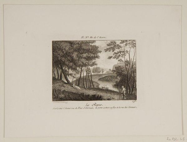 Curator: Adrian Zingg, born in 1734, created this print, “Plate IV.” Editor: It’s delicate, isn't it? Almost ethereal. The textures created through the etching and engraving really lend themselves to a sense of atmospheric perspective. Curator: Indeed. Zingg was instrumental in popularizing landscape art in the 18th century, catering to a growing market for picturesque scenes that reflected social ideals of nature. Editor: The way he renders the tree on the left, with its intricate branching, juxtaposed against the soft, blurred cityscape in the distance, creates a compelling visual dynamic. Curator: The scene itself invites a certain civic pride, portraying the harmony between town and country, which resonated with the burghers of the time. Editor: It seems Zingg understood how to manipulate light and shadow within this medium to evoke a particular mood, a sort of tranquil contemplation. Curator: He certainly captured the spirit of his time. An age that valued both the pastoral and the increasingly powerful city. Editor: It’s quite beautiful how these formal qualities can both evoke and critique their historical and social context.