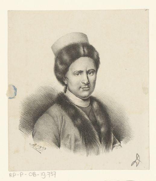 Editor: This is "Portret van Jean Althen," a pencil drawing made sometime between 1819 and 1843 by Ephraïm Conquy. The shading is incredible; it gives a real softness to the subject's face and turban. What are your observations? Curator: Indeed. The composition strikes me as particularly deliberate. Observe the strategic placement of the subject within the pictorial plane, affording ample negative space that accentuates the form and bestows an air of refined elegance. How might the artist’s considered deployment of light and shadow contribute to the overall effect? Editor: Well, the light catches the turban, almost making it seem like a sculpture. The dark shading around the fur collar and under his chin really brings his face forward. But, is there something more to be discovered in these textures and tonal gradations? Curator: Precisely! Reflect on the contrast between the smooth rendering of the face and the comparatively textured depiction of the fur collar. Is this tension intentionally constructed by Conquy? How do the formal properties enhance our engagement? Editor: It's interesting how the contrast in texture emphasizes both the face and the fur. I see what you mean about everything feeling intentional, like every mark serves a specific purpose. Curator: Consider the Neoclassical emphasis on line and form. Do you notice a similarity to other portraits of the period, a focus on geometric simplicity underlying naturalistic representation? These linear and tonal techniques allow an engagement with artistic practices from the past, made novel for the period. Editor: That's fascinating, looking at it purely as an object, and noticing all those calculated choices regarding light and form. I had not thought about it this way. Curator: A formalist perspective illuminates the silent dialogues artists have with art history through their conscious manipulation of form and material.