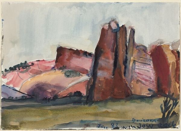 Curator: It's quite sobering. There's a muted palette, the ochre and drab hues feel incredibly bleak. Editor: That's a fair response. John Singer Sargent created this watercolor entitled "Dugout" around 1918. Consider that timeframe, and it's not just a landscape. Curator: Of course, World War I. It speaks volumes about the psychology of survival and shelter; those makeshift dwellings feel both fragile and essential. It captures the human need for safety amidst chaos. Editor: Exactly. These images offered glimpses into lives often unseen, influencing public opinion. The symbolism, however understated, of digging in, resonates even today with socio-political undertones of resilience and resistance. What is being hidden or protected? Who builds the dugout and what do they expect from it? Curator: Look closely—Sargent juxtaposes those heavy browns of earth and survival with wisps of blue sky. Is it hope? Escape? Or the reminder of a world beyond the trenches? The symbols offer a complexity which, despite being subtly introduced through color, offer the painting such gravity. Editor: And while watercolor can be seen as "less serious" or immediate, the immediacy is powerful. It allowed Sargent to quickly document scenes and relay their impact without heavy staging. How do the formal qualities impact popular memory, for example? Sargent used his name to validate these "snapshots." It certainly raises interesting questions about authority and visual truth. Curator: The very idea of truth in a time of war. I agree. The way Sargent used accessible media invites viewers in to reflect and process experiences. There are archetypal meanings here—of safety, the desire to protect, of the psychological and emotional toll war takes. The painting reveals the paradox: strength in fragility and despair juxtaposed against nature's unyielding rhythms. Editor: Ultimately, "Dugout," speaks to how conflict shapes individual experience and collective identity, demonstrating the critical role artists play in portraying and contesting these very memories. Curator: Very true, a chilling reminder and a beautiful consideration on Sargent's role as a cultural communicator.