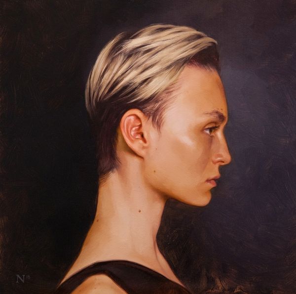 Aaron Nagel painted "fifteen" with oil, and you can see how his brushwork builds up the form. It's like he's sculpting with color, laying down strokes that define the light and shadow on the face. The paint here is smooth, almost creamy, allowing Nagel to blend the colors seamlessly. I like to zoom in and look at the rendering of the hair, which seems to absorb all light. But what really gets me is the gaze. Those eyes feel like they're looking right through you. And the way he captures the subtle shift in color on the cheekbones, that's true skill. I'm reminded of Lucien Freud, though Nagel brings something all his own to the party. Art is a conversation, right? Each artist adding their voice, their perspective, to the mix.