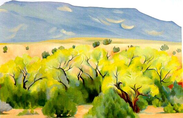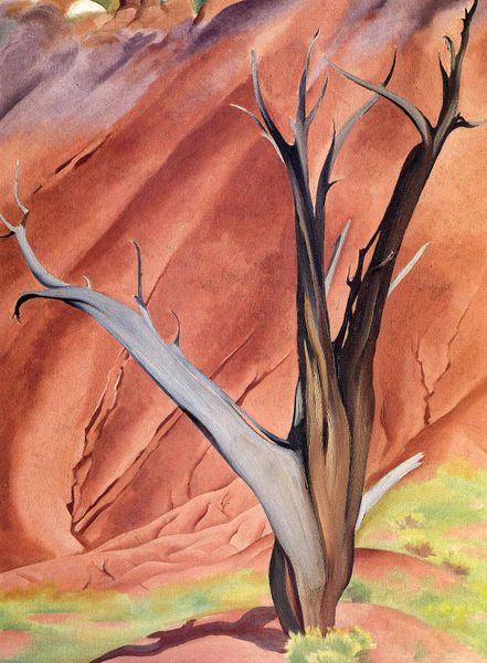 Georgia O’Keeffe made this painting, Dead Tree with Pink Hill, with oil on canvas, and what grabs me is how she simplifies everything into these soft, undulating forms. It feels like a memory, hazy and dreamlike. The surface is built up with thin layers, and there’s a real tenderness in the way she applies the paint, almost like watercolor. Notice how the pink hill in the background isn’t just pink, but a mix of peach, yellow, and even a touch of green, creating this subtle glow. And then you have the dead tree itself, stark against the sky, with branches reaching out like skeletal fingers. It’s a really striking contrast between life and death, beauty and decay. This piece reminds me of Arthur Dove, with his simplified shapes and interest in capturing the essence of a place. But O’Keeffe brings her own unique sensibility to the landscape, making it feel both intimate and monumental. It’s a painting that invites you to slow down and contemplate the beauty of the natural world, even in its most barren forms.