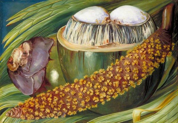 Marianne North, a British biologist and botanical artist, painted "Ripe Fruit of a Screw Pine and a Sprig of Sandal Wood." North was born in the 19th century, a time when travel for women, particularly to far-flung destinations, was unusual. Yet, she defied convention, embarking on extensive solo journeys to document the flora of various countries. Her work intersects with themes of colonialism, as her access to these landscapes was facilitated by British imperial power. This painting isn't just a botanical study; it's a record of a particular kind of journey. As North observed, “It is a pity that one cannot put more expression into a botanical picture.” The rich colors and detailed rendering of the fruit invite a close look, a sensory experience. The painting also prompts us to consider the dynamics of cross-cultural exchange and the role of women in scientific exploration during the Victorian era.