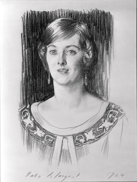 Curator: Sargent's 1924 portrait drawing of Kate Winthrop Morse exudes a quiet confidence, don't you think? Editor: Indeed. There's a reserved dignity, almost a shyness, emanating from her soft gaze. Curator: Knowing Sargent's background as a sought-after portraitist, it's intriguing to see him use such a simple medium, charcoal, to capture her likeness. The pearls suggest a certain status. Editor: Absolutely. Pearls are potent symbols of purity, wealth, and even hidden wisdom. They often denote a transformative process, much like the life of the sitter perhaps? Curator: It is interesting how Sargent uses shadow behind her as a backdrop, a common technique. Editor: I agree. It creates an almost archetypal maternal figure, steeped in history and the cultural expectations of her time. Curator: Well, it certainly leaves a lasting impression, both technically and psychologically. Editor: Precisely. It makes one ponder the narratives art carries and what it reveals about us.