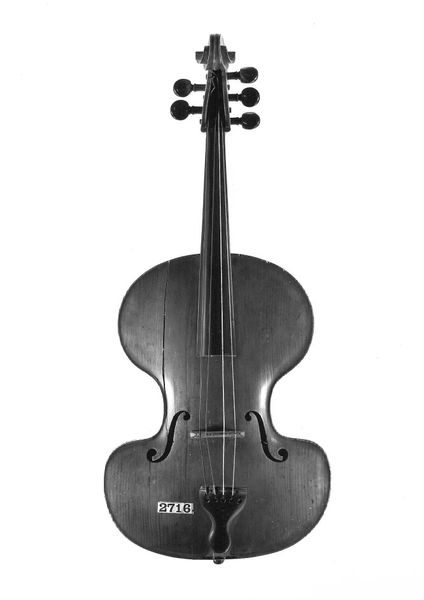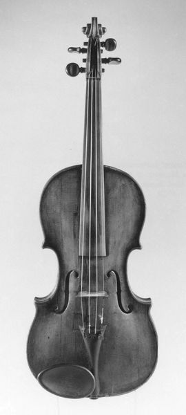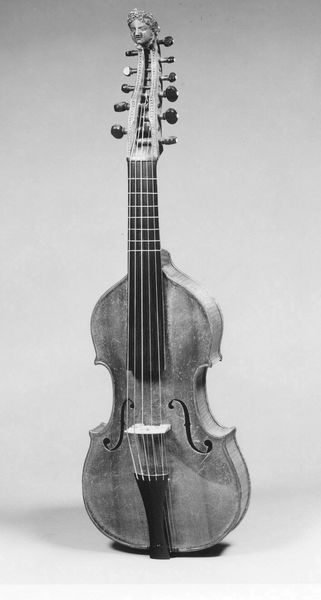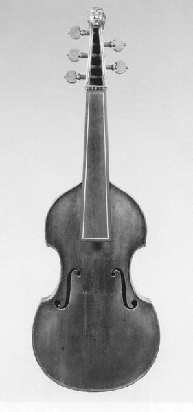 Curator: This is Charles Plumerel’s drawing, "Double Bass and Bow," likely created sometime between 1733 and 1800. It's rendered primarily in graphite and charcoal, capturing the instrument in remarkable detail. Editor: The somber grayscale lends it such gravitas, doesn’t it? It feels more like a monument than a mere musical instrument study. There’s a weighty stillness about it. Curator: Absolutely. The scale of the instrument in relation to the page—and, we can presume, the viewer— speaks to its cultural significance in the late 18th century. Plumerel isn’t just depicting a double bass; he's immortalizing its presence within the social fabric of French musical life. Editor: Considering the era, I'm immediately thinking about access. Who had the privilege to commission or even appreciate an artwork like this? Was it destined for a salon, part of some pedagogical exercise, or even a personal vanity project celebrating musical skill and status? The absence of color, too, adds another layer. It speaks, perhaps, to constraints but also suggests a focus on form. Curator: It speaks volumes about the patronage systems in place at the time. Artists relied on wealthy individuals or institutions. The meticulous detail, the almost photographic realism achieved through charcoal and graphite, speaks to a sophisticated artistic culture—but one inherently limited to a certain societal stratum. Think about how this artwork functions to celebrate French identity and the prestige afforded musical proficiency. Editor: It begs a conversation on who’s voices were amplified—or silenced— within artistic movements. Who got to play, who got represented, and whose stories got ignored. A "simple" drawing opens up questions about power structures and social hierarchies reflected within creative spaces even back then. Even now, access and representation within the art world continue to be fraught. Curator: Exactly. Looking at this drawing, it’s a visual reminder of the selective narratives promoted through art and culture. A testament to both artistic skill and the sociopolitical realities of its time. Editor: I appreciate the historical layering here. It helps to keep in perspective what progress has (and has not) occurred since then regarding social equity within arts and culture.