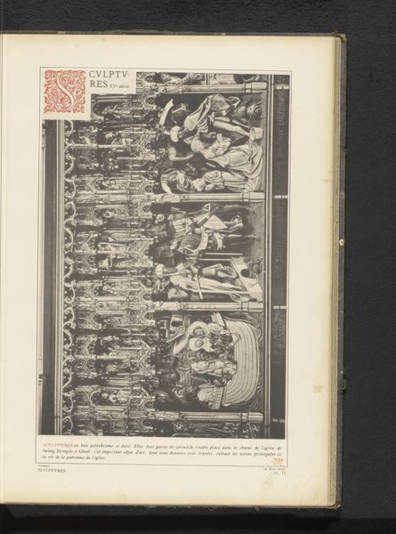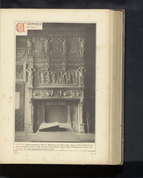 Editor: Here we have an image of a decorated fireplace in the town hall of Kampen. The print, dating from before 1880, captures the intricate detail of the stonework. It seems almost impossibly ornate for its function. What strikes you most about it? Curator: I immediately think about the labor involved. Look at the stone, presumably locally sourced. The carving, the transport—all of this speaks to the social power structures inherent in its creation. Who commissioned this? Who profited? What was the role of craft guilds? Editor: So, you're thinking about the process and the people behind the object? Curator: Absolutely. The material isn't just inert matter; it's infused with human intention and social relationships. Notice how the elaborate decoration serves to distinguish the fireplace from simple functional ones – marking the social space and use of this town hall's great hall. What's being "consumed" here, beyond firewood, but also visible material of wealth and prestige? Editor: That’s a completely different way of seeing it than I imagined. I was focusing on the artistry. Curator: Artistry is undoubtedly present. But the choice of stone, the style of carving—all are determined by the available resources, the skills of the artisans, and the prevailing social order. Considering those limitations allows us to see beyond mere aesthetics. Editor: I see your point. It prompts you to ask who got to create beauty, and under what conditions. Curator: Precisely! Thinking materially moves us beyond appreciation to a critical engagement with power dynamics. What an elaborate statement of wealth to keep a room warm. Editor: That makes me rethink all the decorative arts I've studied! Thank you. Curator: It challenges us to value objects based not just on their aesthetic qualities, but on the stories of making and using woven into their very being.