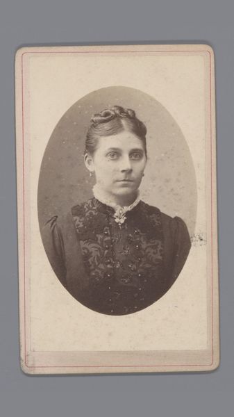 Charles Gallot made this portrait of an unknown young woman in Paris using photography. The rise of photography in the 19th century democratized portraiture. Previously, only the wealthy could afford to have their likeness captured in a painting. Gallot’s studio on the Boulevard Beaumarchais catered to a burgeoning middle class eager to participate in modern visual culture. The woman's modest dress, while not overtly fashionable, is neatly arranged and her hair carefully styled. This suggests a desire for upward mobility and self-presentation. The photographic process itself, with its standardized formats and relatively low cost, became a tool for individuals to shape their social identity. To fully understand this image, we can look to sources such as photographic journals, studio ledgers, and social histories of Paris during this period. These resources reveal the complex interplay between technological innovation, social aspiration, and the evolving role of visual representation in everyday life.