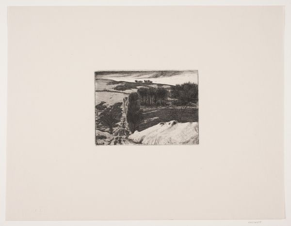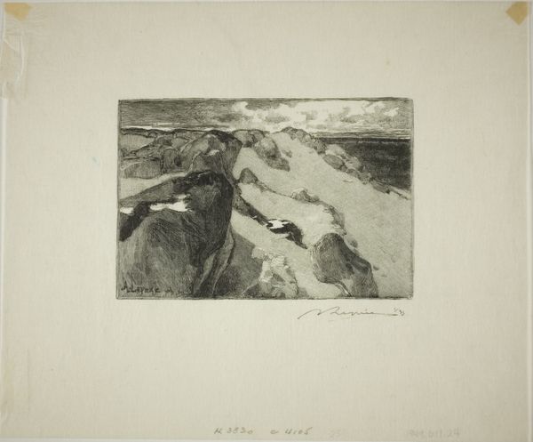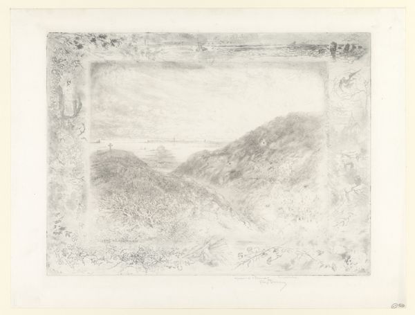 Editor: Here we have Emanuel Larsen's "Hekla på Island" from 1849. It's a print, almost like an engraving, depicting a volcanic landscape. The immediate feeling I get is one of quiet foreboding. All that delicate line work capturing something so powerful and dangerous! What do you see in this piece? Curator: It sings to me of nature's awesome, untamed power, you know? The eruption, so meticulously rendered, it's like Larsen's wrestling with the sublime. And I see a connection to the Romantic painters of the time, Turner comes to mind, folks who sought to capture that feeling of awe, that almost terrifying beauty of nature. Do you pick up on that tension? Editor: Absolutely, it's there in the details, the contrast between the stillness of the landscape and the explosive force of the volcano. But I'm curious, what does it mean to represent a natural disaster in such a detailed way? Curator: Ah, now you're asking the right questions! Maybe Larsen is trying to understand the eruption, to tame it somehow by fixing it onto the page. Or maybe he's saying, "Look at this raw energy, this thing beyond human control!" Perhaps both. I find myself wondering what it felt like to witness something like that… that primal, terrifying release of energy. Editor: It's easy to get lost in those thoughts. I appreciate how the tight rendering, far from diminishing, reinforces its raw emotional power, but from such a distance. Curator: Exactly! It is, ultimately, the nature of human spirit. We turn to our anxieties with pen in hand. Well, this little journey has given me food for thought too. It’s funny how an artwork can ask more than it answers, isn’t it? Editor: Totally! Thanks for your perspective, it's really enriched my understanding.