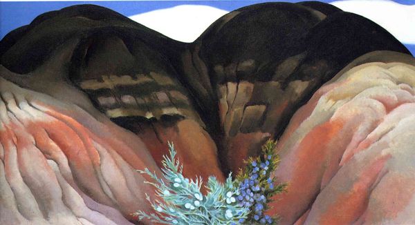 Curator: Thomas Lowinsky's "The Breeze at Morn"—it feels like stepping into a dream, doesn't it? Editor: It does—the muted palette and almost theatrical staging, though, give it a somewhat unsettling feel. I'm interested in the layering of the paint itself; it seems intentionally subdued. Curator: Absolutely. Lowinsky was quite interested in symbolism. That winged head—perhaps a Zephyr—seems to breathe life into the landscape. Editor: And what life is that, exactly? Those lilies feel more like set decoration than naturally occurring flora. I think Lowinsky is pointing to the artificiality of idealised landscapes, the labor involved in producing such romanticized visions. Curator: Or perhaps he’s simply inviting us to find beauty in the unexpected. It’s certainly sparked my imagination. Editor: And for me, it's highlighted the artifice behind the aesthetic experience. Worth pondering, don't you think?