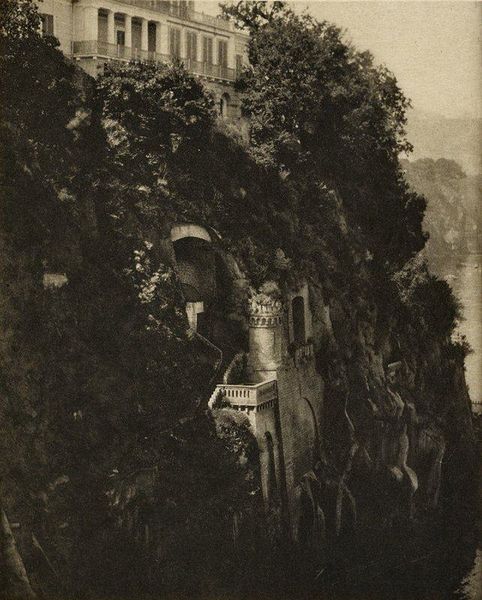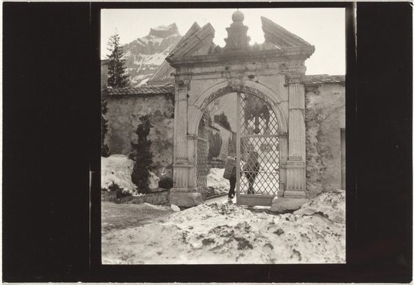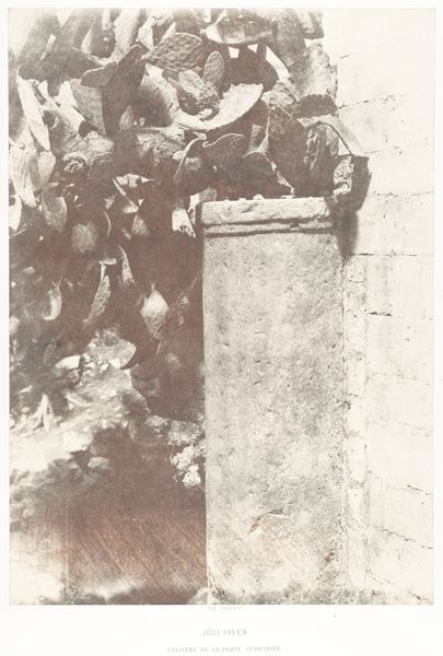 Editor: So, this is "Scène achter een huis, met een onbekende man staand op een trap" by Louis Crette, created sometime between 1854 and 1865. It's a daguerreotype, which is one of the earliest forms of photography. What strikes me most is the stillness, the way the light almost sculpts the scene. What do you see in this work, especially considering its age? Curator: Well, aren't we lucky to peek through time like this? For me, this daguerreotype whispers of secrets and forgotten narratives. That lone figure, perched on the steps, isn't just "an unknown man," but an invitation. The mundane--a courtyard, steps, a tipped basket--become intensely poetic under Crette's eye, a ballet of shadow and light freezing a transient moment. Have you noticed how the architectural forms appear as extensions of the figure himself? Editor: That's a beautiful way of putting it! It does feel like the building and the man are connected. What’s your take on that tipped-over basket? Curator: Ah, that overturned basket! Such an ordinary object brimming with possibilities. Was it carelessly dropped, or purposefully placed as a visual disruption? Is it life interrupted, potential unrealized, or just…breakfast preparations gone awry? See, the beauty of art like this is it resists any easy read, inviting us instead into our own web of associations. Editor: I like that. It’s like the photograph itself is asking a question without offering an answer. Curator: Exactly! It invites us to become storytellers, filling the gaps of the silent image. After all, isn't that what we do with every fleeting moment of our own lives? Editor: I think I'll look at old photographs very differently from now on! Thanks for sharing that perspective. Curator: And thank you for noticing! May your journey through art be filled with curious questions and surprising silences.
