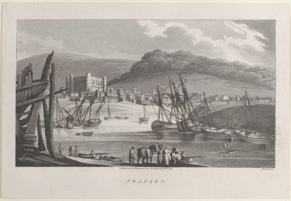 Curator: Welcome. Here we have Hendrik de Leth's 1767 print, "Braubach, gezien vanaf de Rijn," which translates to "Braubach, seen from the Rhine." Editor: The intricate detail, almost like lace! It gives the impression of a tranquil, if somewhat solemn, atmosphere. It really captures the serenity of the river meeting the imposing hills and architecture. Curator: Indeed. De Leth uses etching and engraving to capture the picturesque town of Braubach along the Rhine. What's striking is how the steeple stands out; a potent symbol of civic pride and perhaps, the power of the church at that time. Editor: Absolutely, and let's consider the materials. Prints like these were quite reproducible; allowing this particular view and associated symbolism to circulate among a burgeoning merchant class interested in trade, and who wanted visual affirmation of their holdings and influence. What about that large tree to the left? That’s not just decorative. Curator: You've hit on a vital point. Trees were often utilized to suggest natural beauty but also act as metaphors. A strong tree like this might symbolize resilience, or even longevity of the city itself. Baroque imagery thrives on layering those allegorical connotations. Editor: Precisely. And considering this was made via printmaking, it meant many skilled hands were involved in its creation. It highlights the economic and social structures supporting the dissemination of this particular image. Curator: And in its wider context, Baroque landscape art often served to instill a sense of order and control over nature – the sublime rendered manageable. A statement piece in its own way! Editor: Fascinating how a seemingly placid cityscape, meticulously rendered in ink, reveals so much about both the artistic intentions and the era’s social ambitions. Curator: Ultimately, “Braubach, gezien vanaf de Rijn” provides a window into the intersection of place, power, and perception in 18th-century Europe. Editor: I leave seeing how de Leth’s print demonstrates how commercial art shapes our perception of history and identity. It is a testament to the collaborative and multifaceted processes involved in artmaking.