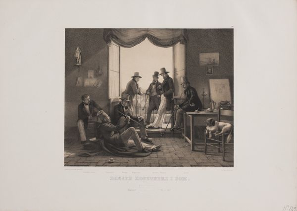 Editor: Right, let’s talk about “Mormonerne” from the 1880s by Adolph Kittendorff. It's a print – a lithograph or drawing – depicting what seems like a family gathering. I'm struck by the light in this image; it almost feels staged, but not in a bad way. What’s your take on the story it seems to be telling? Curator: Oh, absolutely. It’s less a fly-on-the-wall moment and more of a carefully constructed… tableau, wouldn't you say? I see it as a glimpse into a specific social narrative. The clothing, the posture, even the expressions, are clues to decoding a certain chapter in cultural history, maybe a quiet rebellion happening within those walls? Or, maybe a moment of self-reflection is frozen forever… Who do you think these figures might be in relation to one another? Editor: Good point about a quiet rebellion. Maybe. I see some people are gathered reading in the background, as if studying scripture while the foreground seems a little more…posed. Almost staged in the way academic art of the time was inclined. But then why capture this seemingly intimate setting? Curator: The 1880s were a hotbed for social commentary in art. Perhaps Kittendorff wanted to capture something nascent, on the cusp of something big. The print, with its delicate lines, captures the kind of careful observation you often find when people are at once curious and cautious. It’s like a captured memory, almost precious. What emotional register would you say it strikes? Editor: Definitely a sense of intimacy, despite the potential for “commentary” and the staging of the print. And you know, I initially thought “academic art” when I saw it, but the realism almost contradicts that. Now I see a strange in-between that I really appreciate. Thanks for that perspective! Curator: And thank you, for helping me consider Kittendorff with new eyes. Perhaps the artist, like us now, found something beautifully complex in that intersection.