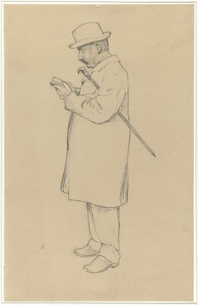 Emanuel Leutze made this pencil sketch of a "Man in Cap and Coat" in 1852. The image presents a man in a cap and coat who seems to be leaning against a wall. Although rendered simply, the work's lines communicate something of the individual’s character and presence. Leutze, a German-American artist, is well known for history paintings, such as "Washington Crossing the Delaware." We might ask, what does this image tell us about the artist’s broader social and cultural context? Leutze lived during a time of significant political upheaval and social change. The revolutions of 1848 across Europe influenced his patriotic, pro-democracy stance. His art often served as a vehicle for expressing his political beliefs and advocating for social reform. To understand this work fully, one might research the artist’s biography and consider the role of portraiture in 19th-century artistic culture. Art becomes meaningful as it engages the social conditions of its making.