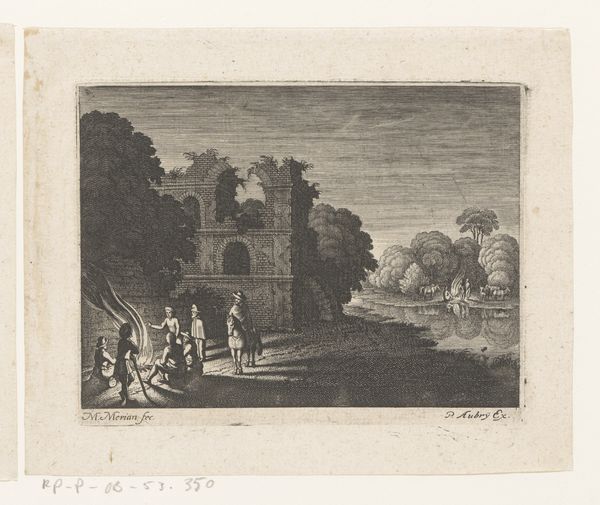 Johannes Gronsveld crafted this small etching, "Landscape with City Gate," around the turn of the 18th century. A weathered city gate dominates the scene, hinting at tales of passage, siege, and resilience. The gate, a potent symbol of transition and boundary, evokes not just physical space but psychological thresholds as well. Think of Janus, the Roman god of doorways, who looks both forward and back, embodying the eternal cycle of endings and beginnings. This motif resonates through time, appearing in medieval tapestries, Renaissance paintings, and even modern film. Each rendering echoes humanity's continuous negotiation between security and the unknown. Observe the figures journeying through the gate – are they merchants, refugees, or perhaps even allegorical wanderers? Their movement activates the same primal anxieties and hopes that have driven human migrations and spiritual quests for millennia. It's a poignant reminder that history, like the symbols it employs, moves in cycles, constantly reshaping our understanding of ourselves and our place in the world.