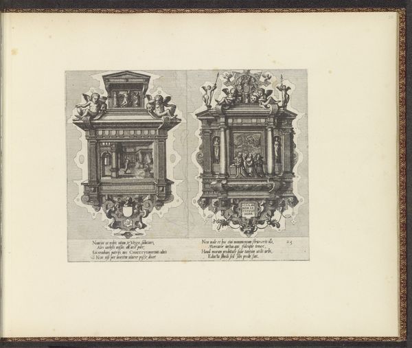 This engraving shows two epitaphs with a kneeling man and gisant, and was made by Johannes or Lucas van Doetechum. Epitaphs like these, common in the Netherlands, were more than just markers; they were potent displays of social standing and family lineage. The coats of arms, the figures of kneeling men and gisants, all speak to a society deeply invested in preserving its hierarchy. Produced at a time of great religious upheaval and social change, these epitaphs represent more than the memory of the dead. They are also powerful statements about how families wished to be seen and remembered in the face of changing times. Understanding such an image means digging into the social history of the Dutch Republic, exploring its religious tensions, and studying the visual codes that governed social representation. Only then can we grasp the full meaning of these carefully constructed memorials.