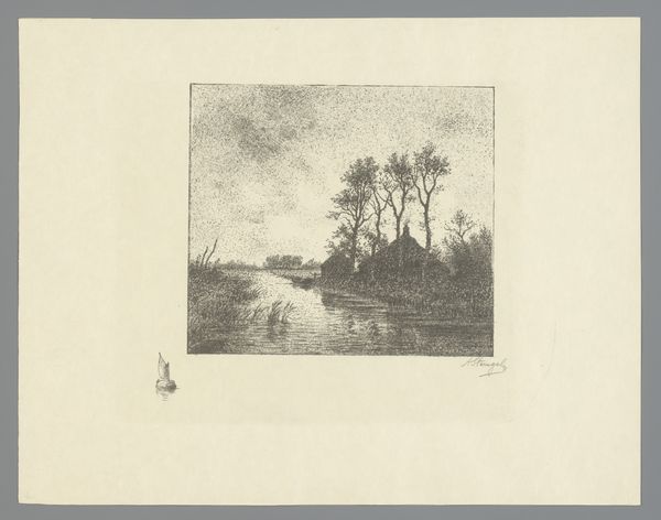 Editor: So, here we have "Schepen in een vaart bij knotwilgen" – that's "Ships on a canal near pollard willows" – by Jan Veth, dating sometime between 1874 and 1925. It’s a pencil drawing housed in the Rijksmuseum. There’s something really muted about this. It’s very calm and a bit melancholic, maybe? What catches your eye when you look at it? Curator: Oh, I’m so glad you picked up on the quiet mood! It speaks volumes, doesn't it, even without colour? To me, this drawing is a whisper of a memory. Veth captures not just the scene – the ships, the willows – but also the very essence of a still, possibly overcast day. Notice how the soft pencil strokes almost dissolve into the background mist; it’s less about sharp details and more about capturing the overall feeling. It’s very Dutch, very impressionistic in that way. Does that make sense? Editor: It does! It's interesting you say 'memory'. It's making me think about my childhood. It reminds me of all of the simple little trips, and not focusing so much on the journey, but just 'being there', which creates a certain nostalgia. I think that you mentioning about dissolving things helped click that! But then I think... where's he looking in that time to capture this so well? Curator: Ooh, brilliant connection! Precisely! Perhaps Veth was looking into the very nature of simplicity to recreate a moment! Don't you feel almost invited to step into that quiet Dutch scene, right into Veth’s mind as he renders his vision? Perhaps a gentle reminder to appreciate the everyday moments. I find the bare branches reaching towards the sky particularly poignant. They are symbols, perhaps of reaching for something beyond, something intangible. What do you think? Editor: Yes, there is that element of the melancholic as if you were waiting for a moment that may or may not come, but those branches do create an extra level of emotion that perhaps wouldn't be as impactful if they were "full". It gives you so much more! I think I'll be lingering with that for a little while. Curator: Agreed! Art offers up a bit of its heart for us to feel as much or as little of the moment. Thanks, I feel I can visit this with an enriched version now.